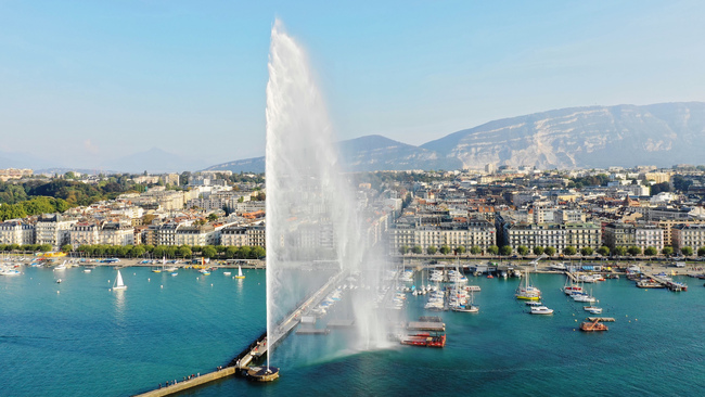 Geneva jet d'eauone of the largest (biggest) fountains in the world.visible from the city and from the air (even from an altitude of 10 km).